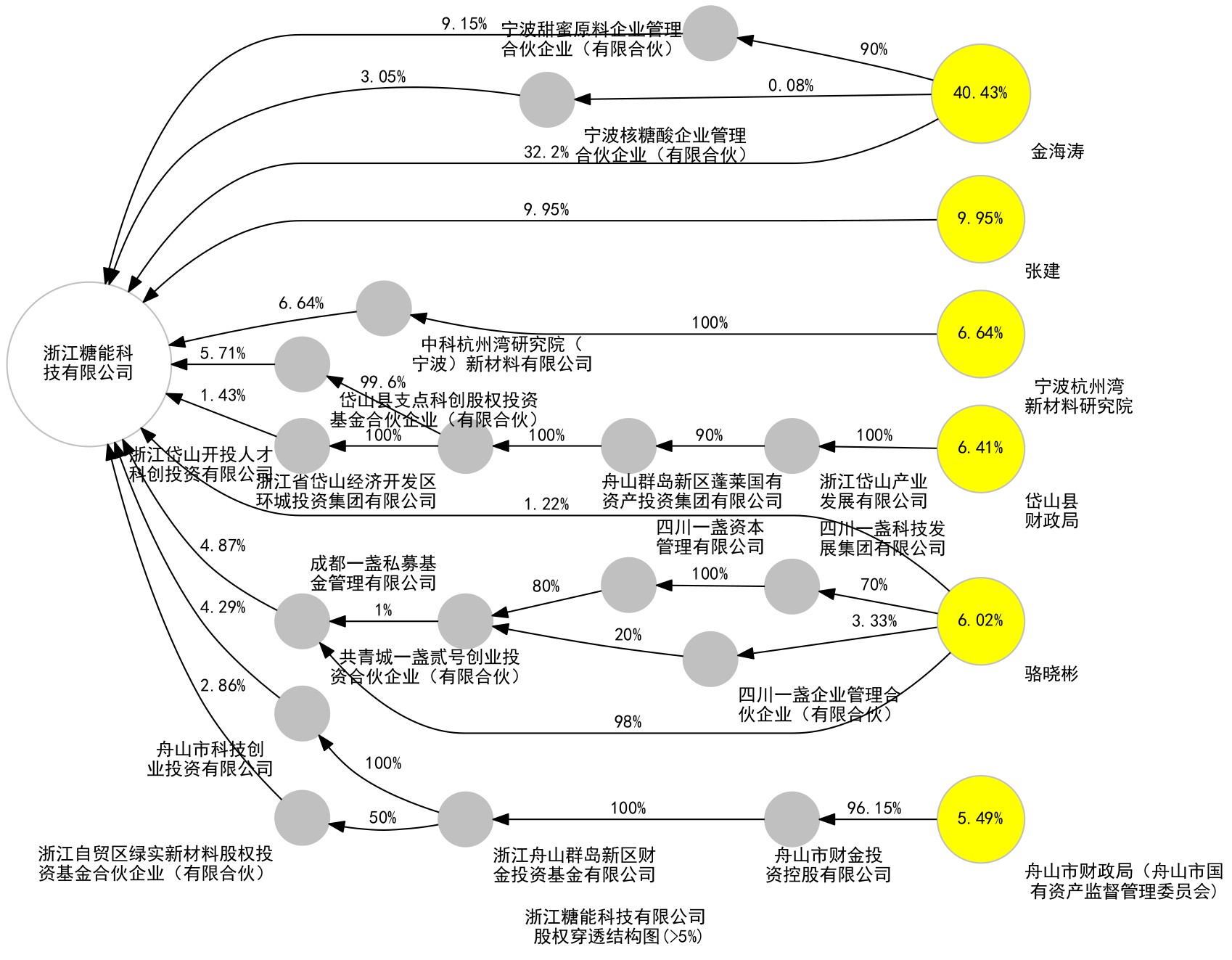 | 1 | 岱山糖能新材料有限公司 | 存续 | 2022-01-05 | 浙江省舟山市 | 科学研究和技术服务业 | 100% |