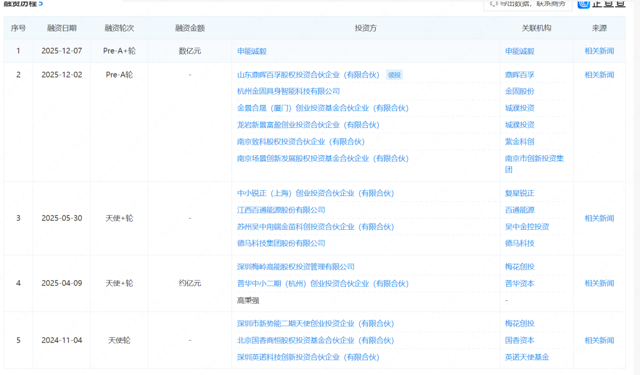 鹿明机器人在一年内完成5轮融资,2024年11月引入英诺天使、梅花创投、国香资本;2025年4月完成由高秉强教师、普华资本、梅花创投投资的约亿元融资;2025年5月引入复星锐正、百通能源、吴中金控、德马科技;本次两轮融资引入了金固股份、鼎晖百孚、南京创投、申能诚毅等机构。