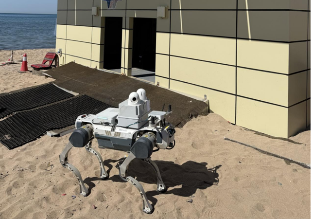 机器狗在沙特 NEOM 未来新城极端沙滩环境户外巡检