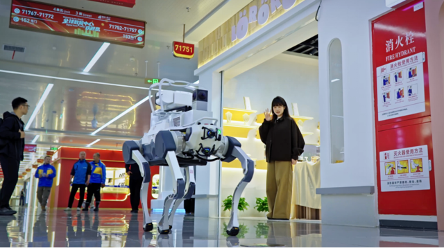 今年以来,云深处科技还 积极拓展丰富更多落地新场景 ,不断推进各行各业智能化升级。在 “世界超市” 义乌国际商贸城, 绝影 X30 机器狗成为 “移动安防站”,承担起重点区域巡逻、消防隐患排查、异常行为预警三大核心职责,成为 商贸城首位 “24 小时不打烊” 的科技安防员 ,破解超大型市场的安防痛点,助力管理人员实现 “全局动态尽在掌握” 。