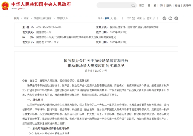 ▲ 国务院办公厅印发“支持场景培育”政策文件