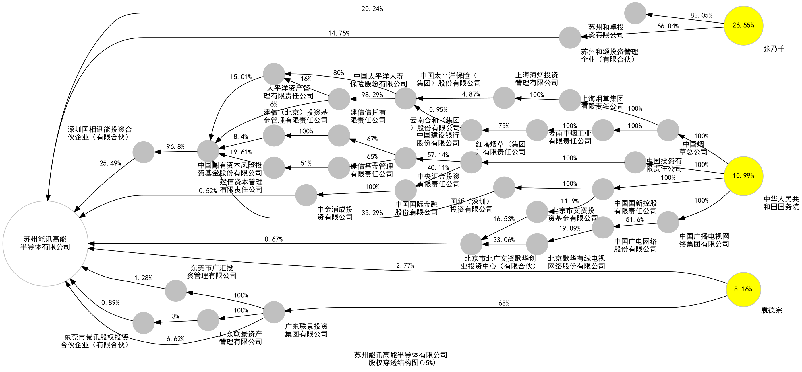 | 1 | 池州能讯半导体有限公司 | 存续 | 2025-01-15 | 87.3418% | 69000万元人民币 | 0.1253% | 安徽省池州市 | 制造业 | - |