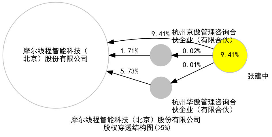 | 6 | 摩尔线程 摩尔线程智能科技(杭州)有限责任公司 | 存续 | 2025-03-13 | 100% | 2000万元人民币 | 浙江省杭州市 | 制造业 | 摩尔线程 |