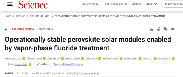 作为全球光伏产业的前沿方向,钙钛矿技术兼具高效率、低成本、可柔性制备等优势,但稳定性一直是制约其大规模商业化的核心难题。凭借团队十余年的研发积淀,黑冕光电多次打破钙钛矿光伏稳定性世界纪录,实验室级钙钛矿光伏器件稳定性超过30年,小尺寸模组(228cm²)稳定性超过20年,大尺寸模组(900cm²)在户外实测中首次实现了与商用晶硅太阳能电池相当的稳定性。相关研究成果均发表在《科学》(Science)期刊上,这一系列技术突破,系统性地攻克了钙钛矿光伏产业化进程中“实验室--产线--户外”的全链条稳定性难题。