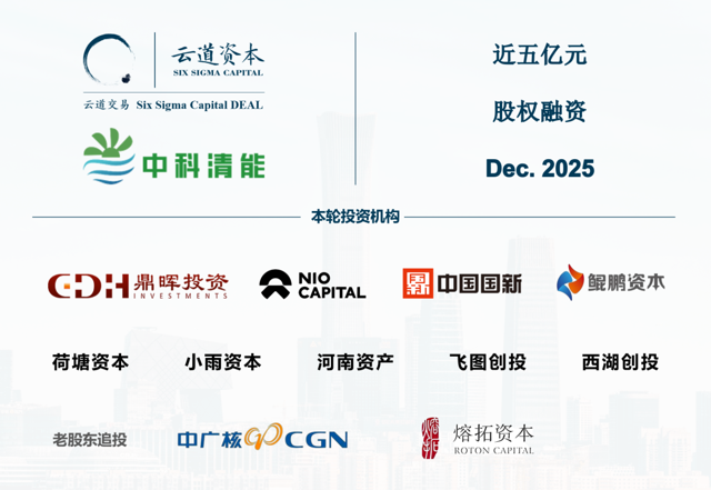 近期,河南中科清能科技有限公司宣布已于2025年12月完成新一轮股权融资,融资规模近5亿元。 本轮由鼎晖百孚领投 ,蔚来资本、国新基金、鲲鹏资本联合领投,荷塘资本、小雨资本、河南资产、飞图创投、西湖创投等多家知名投资机构共同参与,原股东熔拓资本、中广核资本继续加持, 由云道资本担任财务顾问。